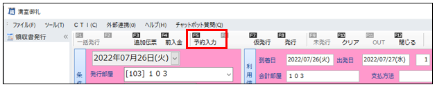 • 部屋台帳や予約検索から該当の「予約入力」を開き、人マークから顧客情報を表示します。
