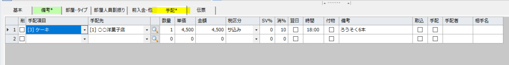 該当の「予約入力」を開き〔手配〕タブから登録が可能です。