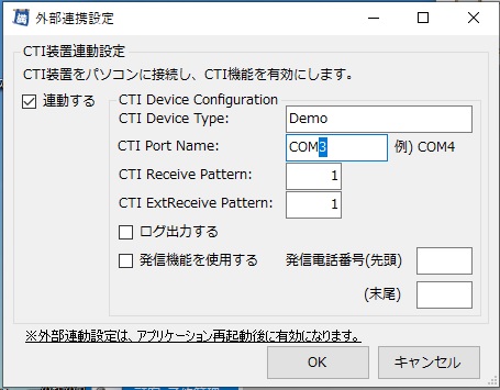2.〔CTI Port Name〕: (例)COM3 ※WindowsのCOMナンバーを入力して下さい。